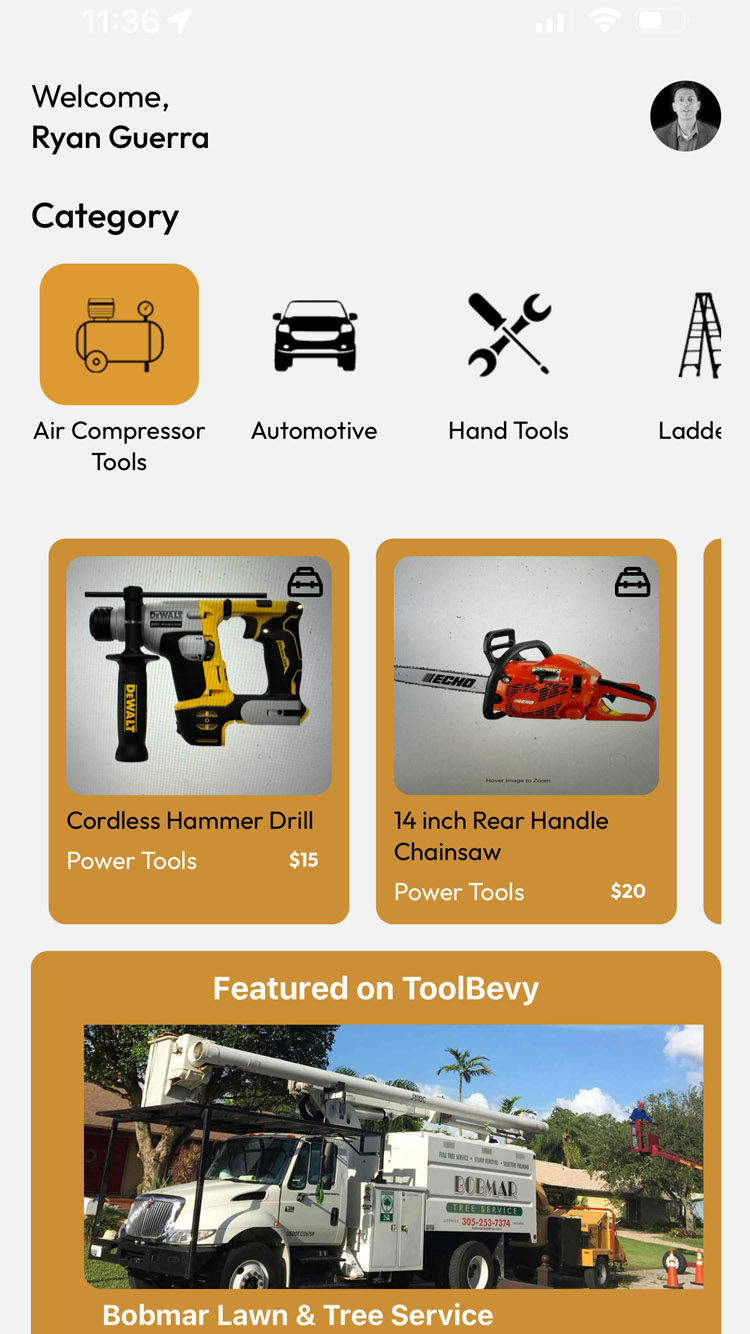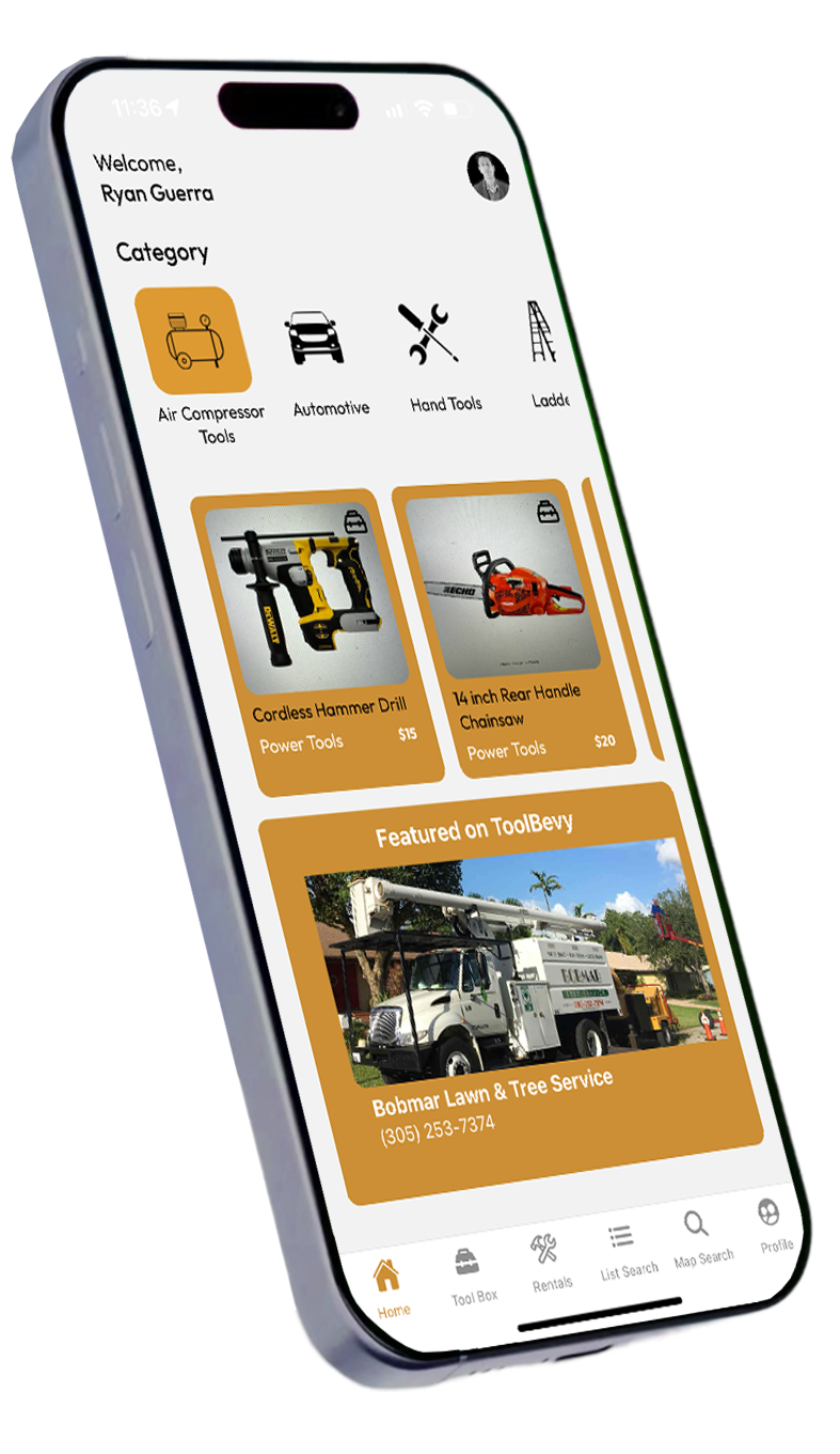ToolBevy is the most useful utility app that allows neighbors to rent tools from neighbors. We allow users to login and start uploading tools to rent. We will this is the best app that will lower the price to get more work done.