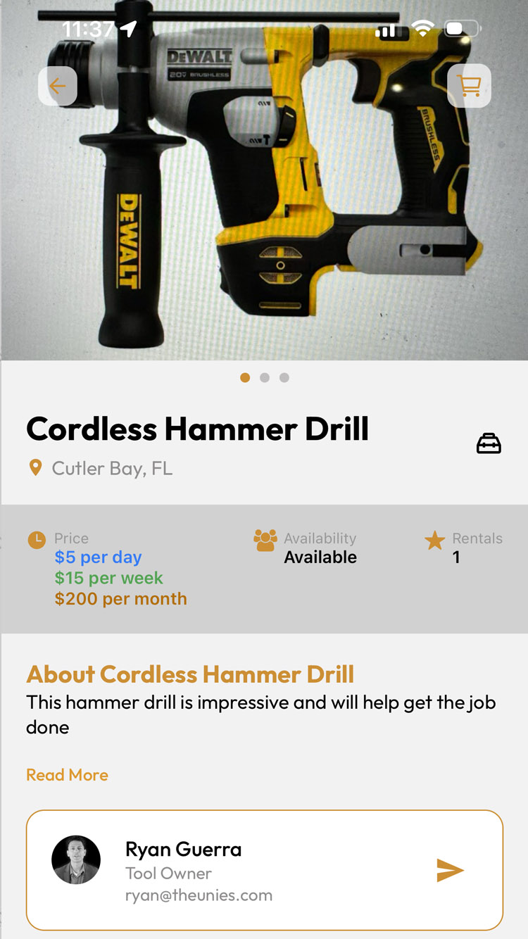 We want to make it easier and cheaper to rental tools to accomplish tasks while allowing owners to make money renting out their tools. - Ryan Guerra