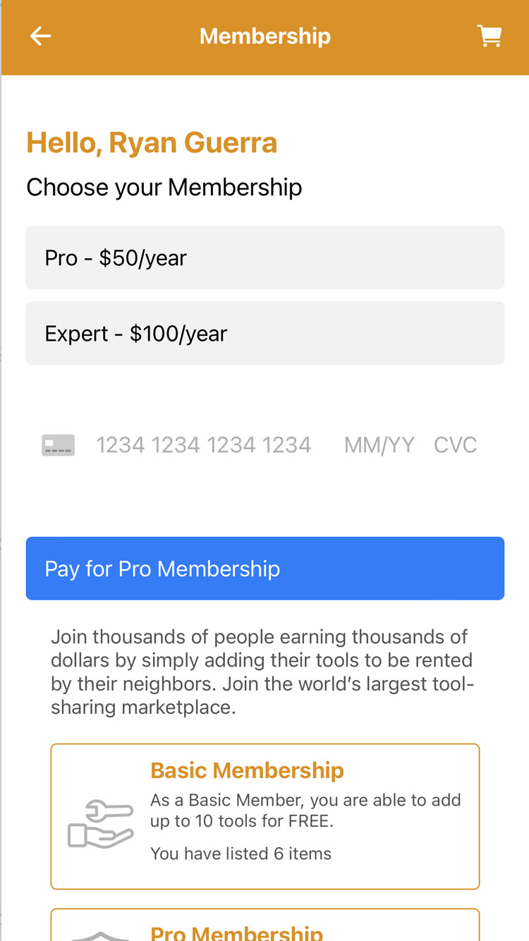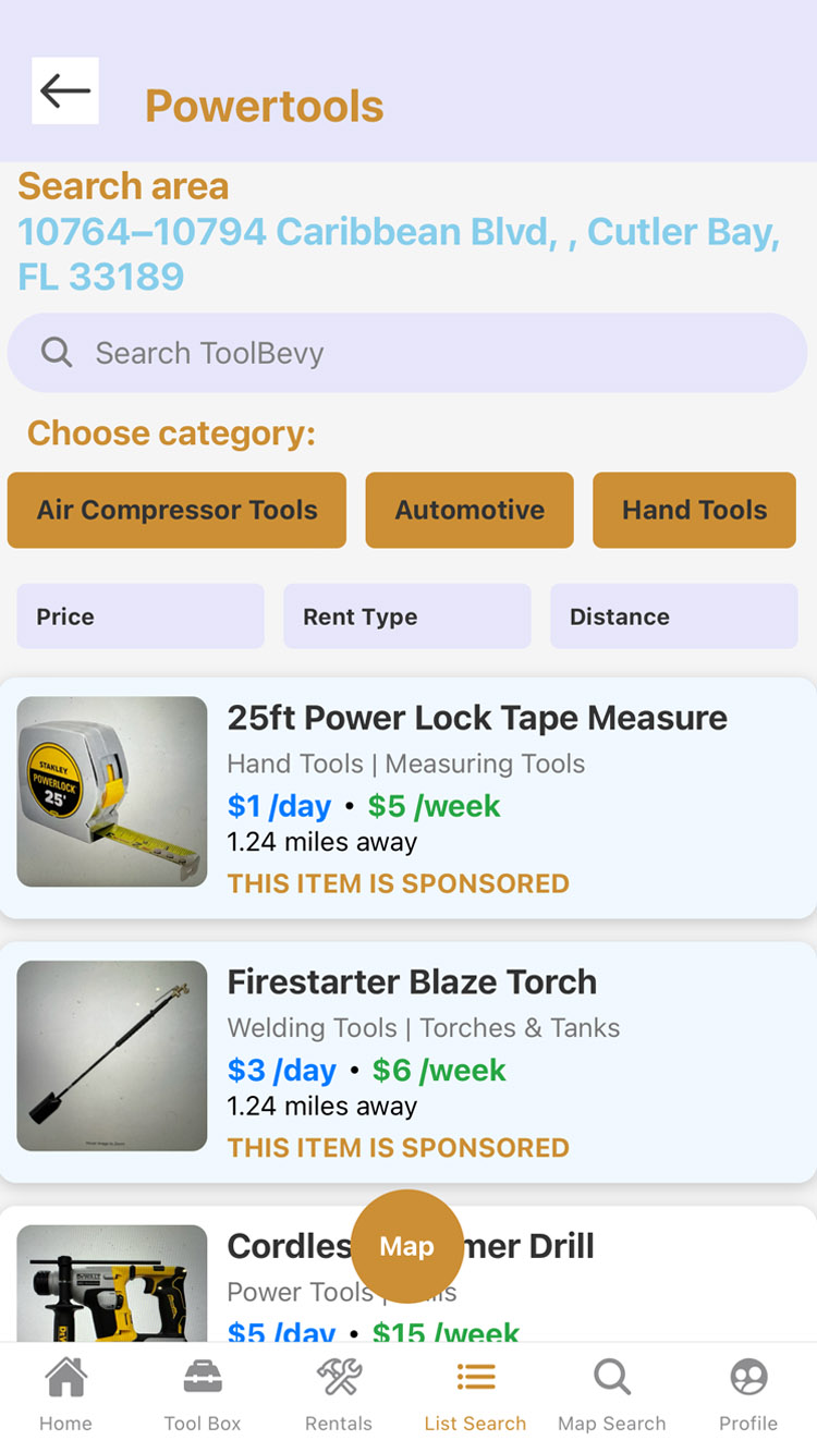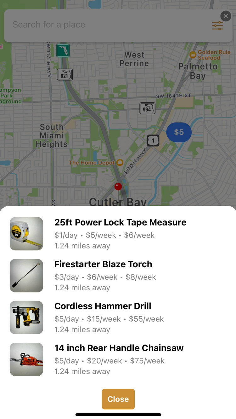 Our mobile app has many features that make it easy and convient to rent tools from from each other.
